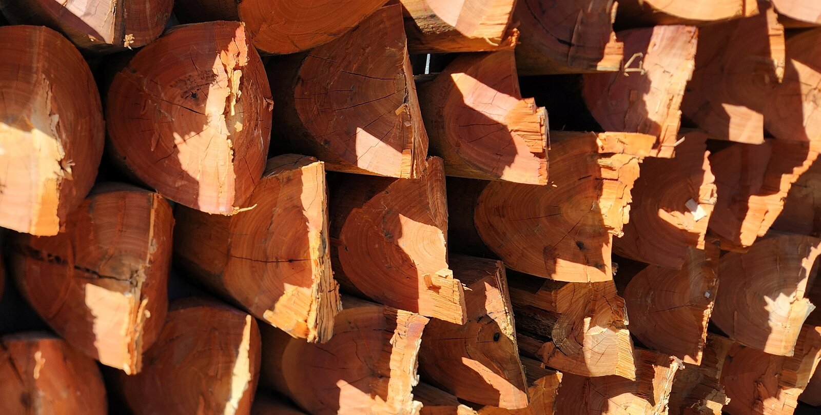 The wood pile makes for an interesting picture