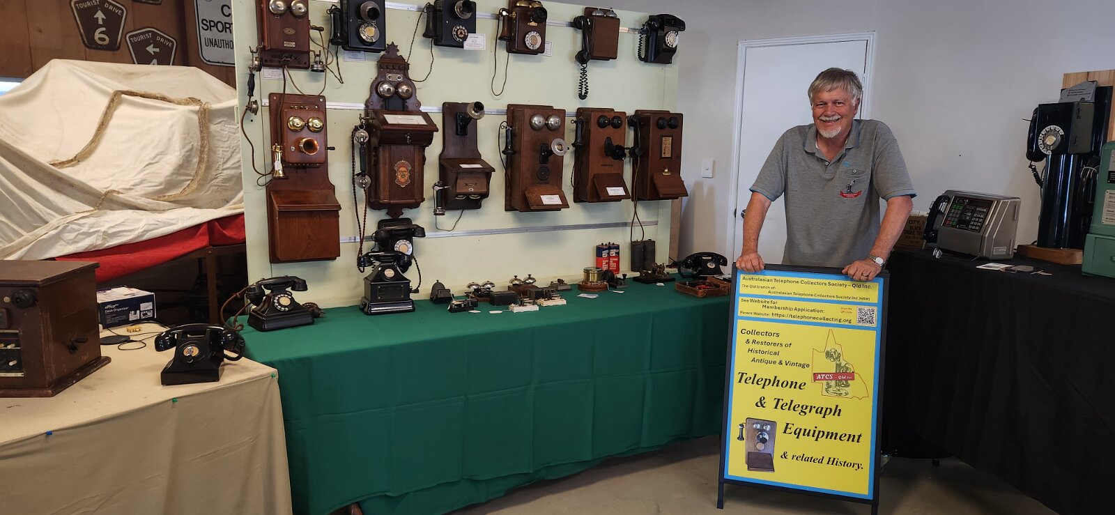 The weekend of 26/27 July. This year we again joined the South Coast Restoration Society at their annual rally event at Pimpama (Qld). This year their rally included displays of the Rusty and Dusty, vintage Motorbike and Car Market sale and swap meet. Our 3 exhibitors - Neil Syratt (Payphones). Wayne Stephens. Dave - (Switchboards last shown 2008)